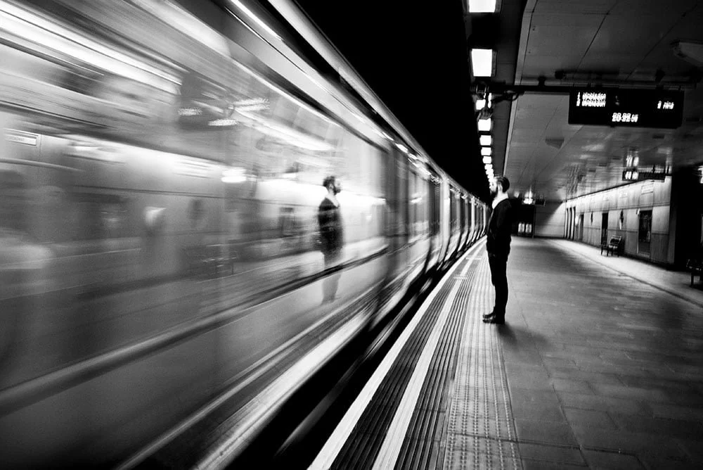 Por ejemplo, un retrato en el que el sujeto se ubica fuera del centro, equilibrado por un fondo que contrasta o complementa la figura, puede transmitir tensión, aislamiento o introspección. Del mismo modo, una escena urbana donde las líneas diagonales convergen en un punto de fuga genera una sensación de movimiento y profundidad.